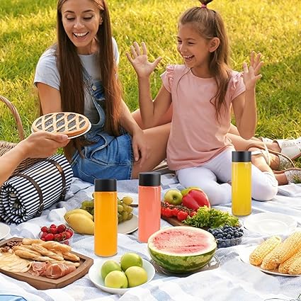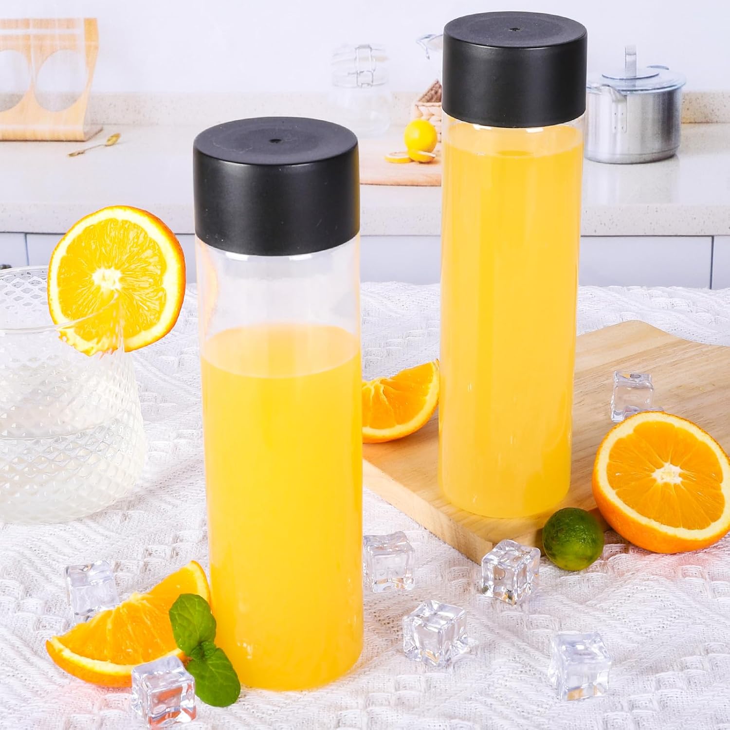 طقم عصري مكون من 4 علب عصير بلاستيكية شفافة بتصميم مدور أنيق، يأتي كل منها بغطاء أسود محكم الإغلاق للحفاظ على نضارة المشروبات. مثالية لتقديم العصائر، المياه المنكهة، أو المشروبات الباردة في البيت أو أثناء التنقل.