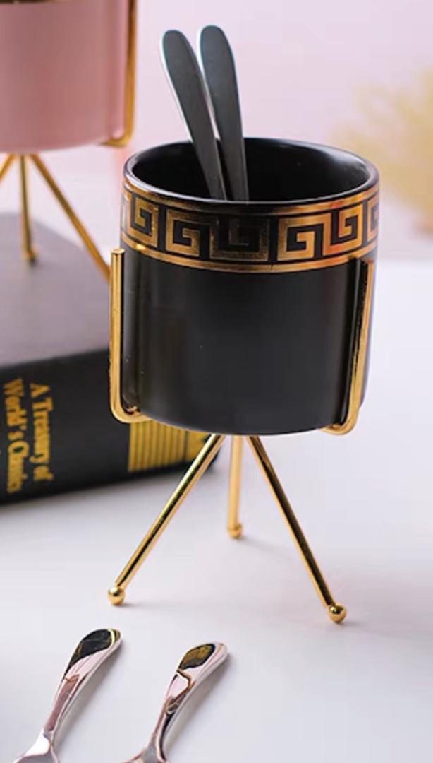 كوب ملاعق حلا سيراميك مدور مع ستاند ذهبي AZ-1505