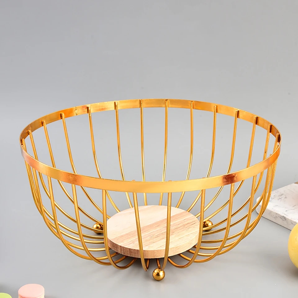 سلة فواكة ستيل ذهبي عميق مدور قاعدة خشب AZ-1567