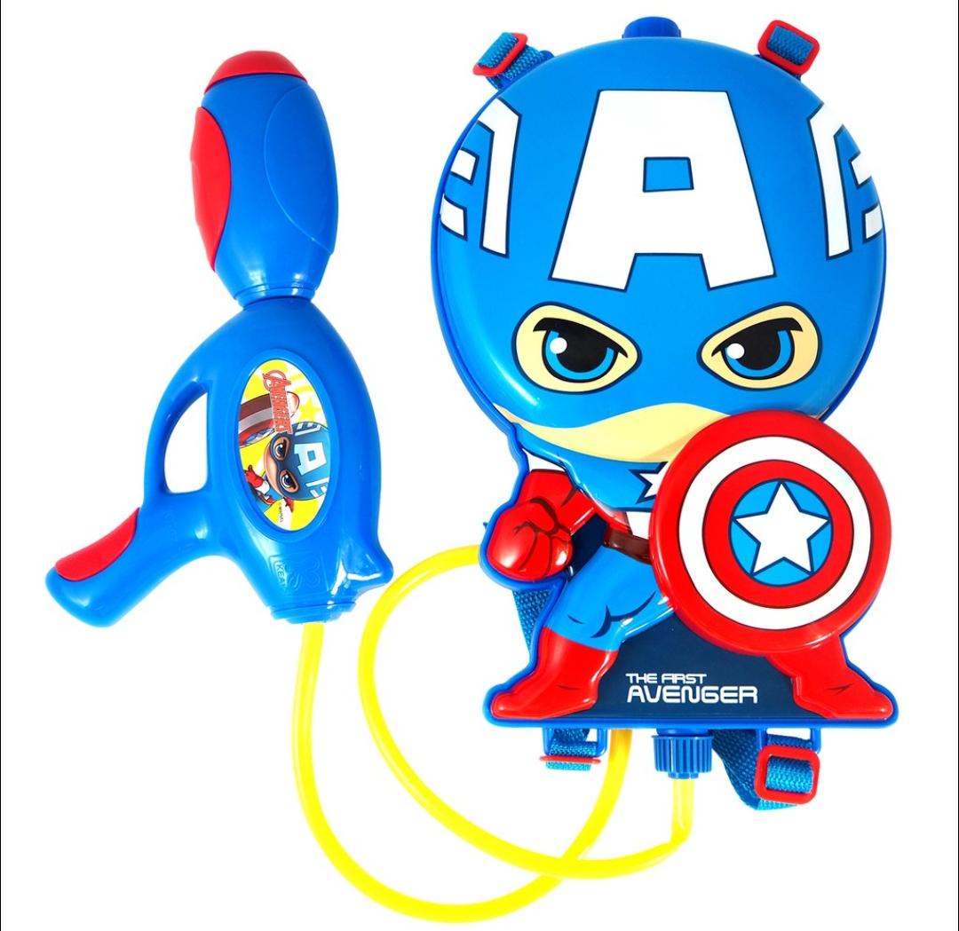 متعة لا تنتهي مع مسدس الماء المرفق بشنطة ظهر بتصميم الأبطال الخارقين سبايدر مان وكابتن أمريكا! لعبة ترفيهية مثالية لأيام الصيف والنشاطات الخارجية، تجمع بين اللعب الحركي والتصميم البطولي الذي يعشقه الأطفال.