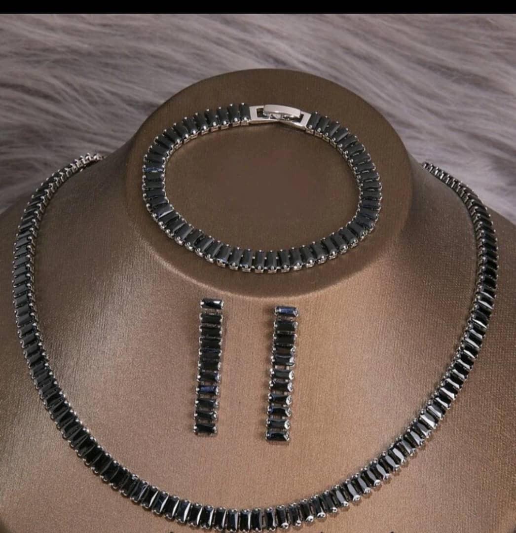 طقم سلس مع مع اسوره واخراص زركون اسود Q-961