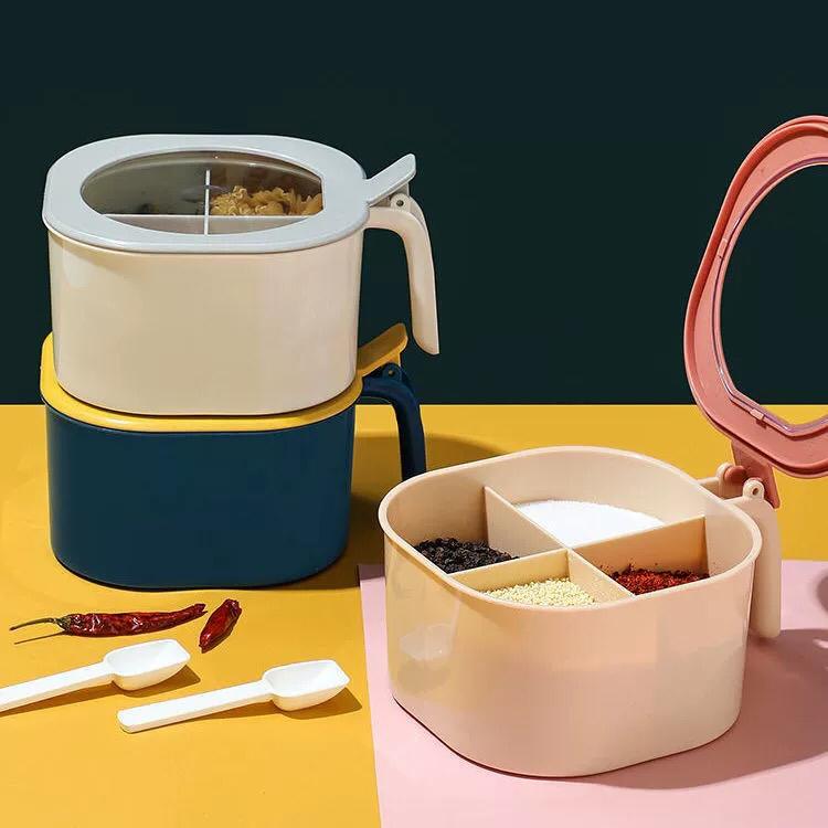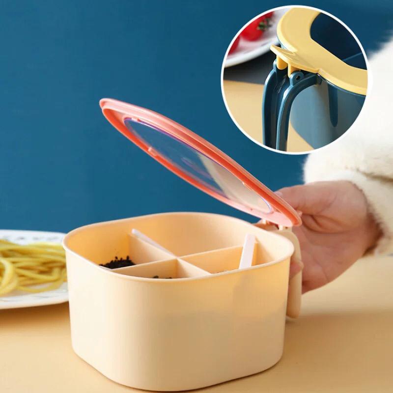 علبة بهارات معتم بيد - مقسم 4 خانات مع الملاعق AZ-1118