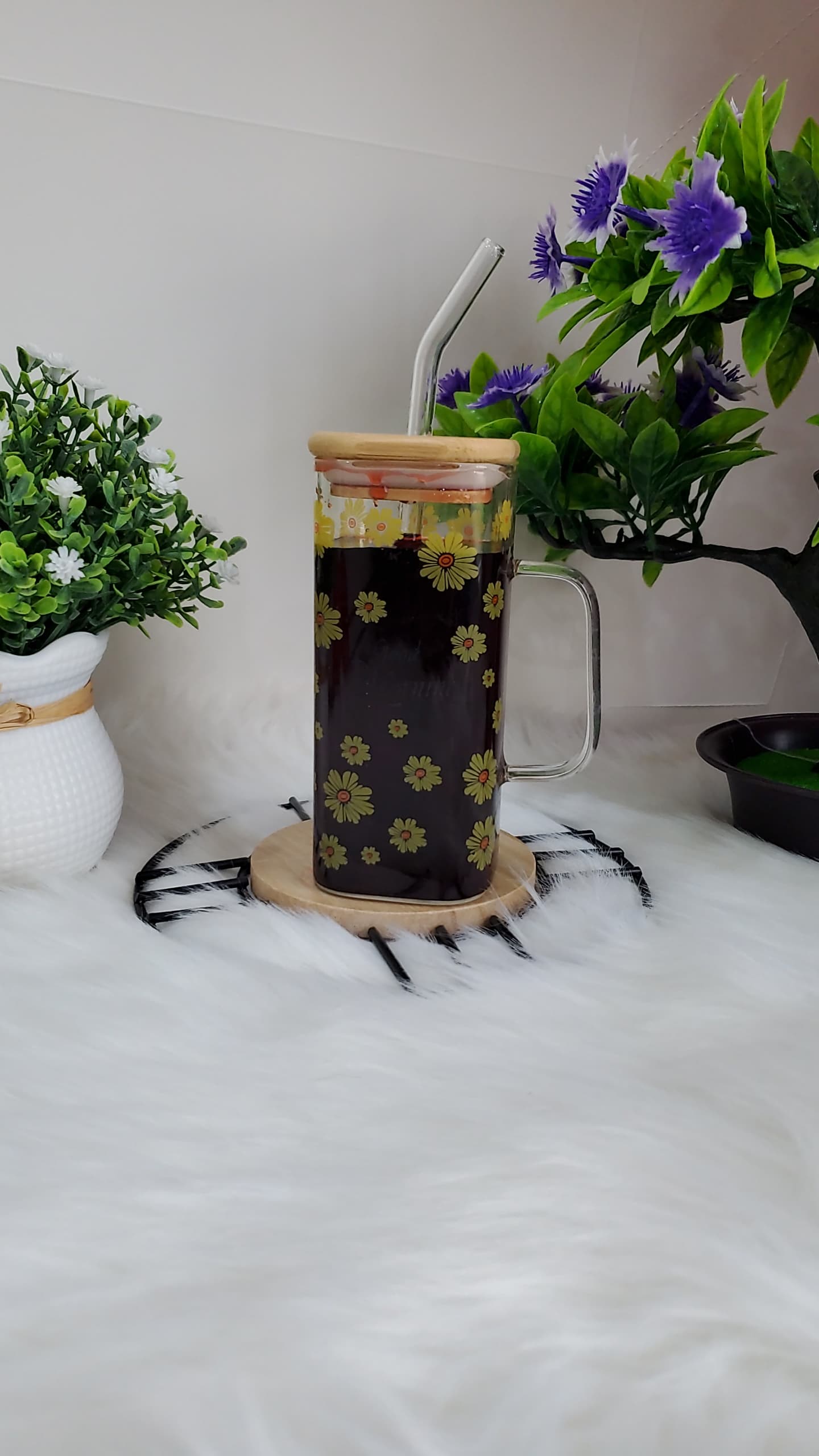 أضف لمسة جمالية لمشروباتك مع الكوب الزجاجي العصري المصمم بغطاء خشبي بنقشة طبيعية أنيقة، ومصاصة مدمجة لسهولة الاستخدام. مثالي للعصائر، القهوة الباردة، والمشروبات اليومية.