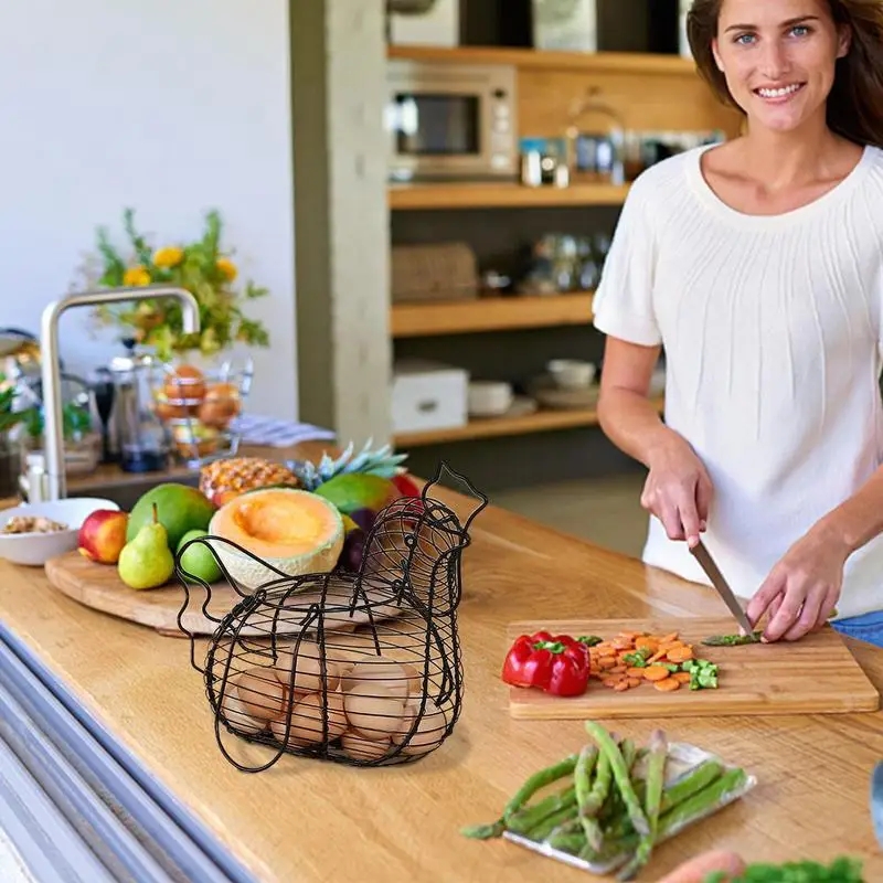 سلة بيض شكل دجاجة اسود قاعدة خشبية AZ-2142