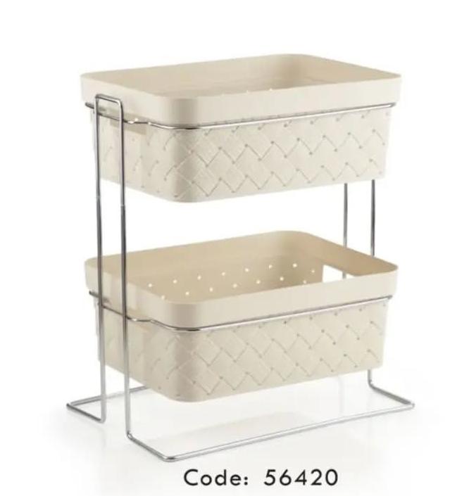 نظِّم مطبخك بسهولة مع سلة الخضار البلاستيكية المكونة من دورين مع الاستاند من ماركة يزدكل، تصميم عملي يوفر لك مساحة إضافية لتخزين الخضروات والفواكه بشكل مرتب وبدون فوضى.