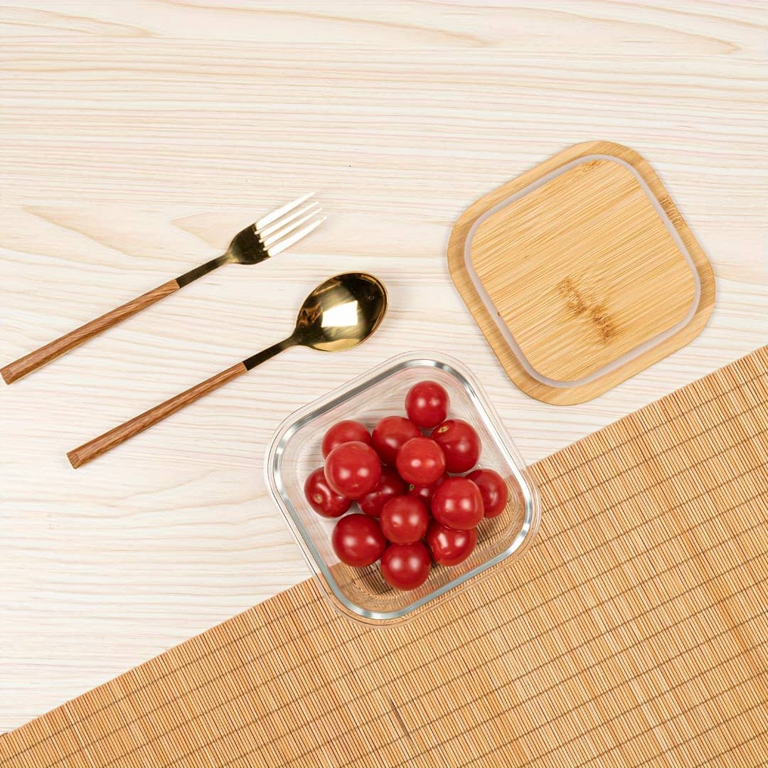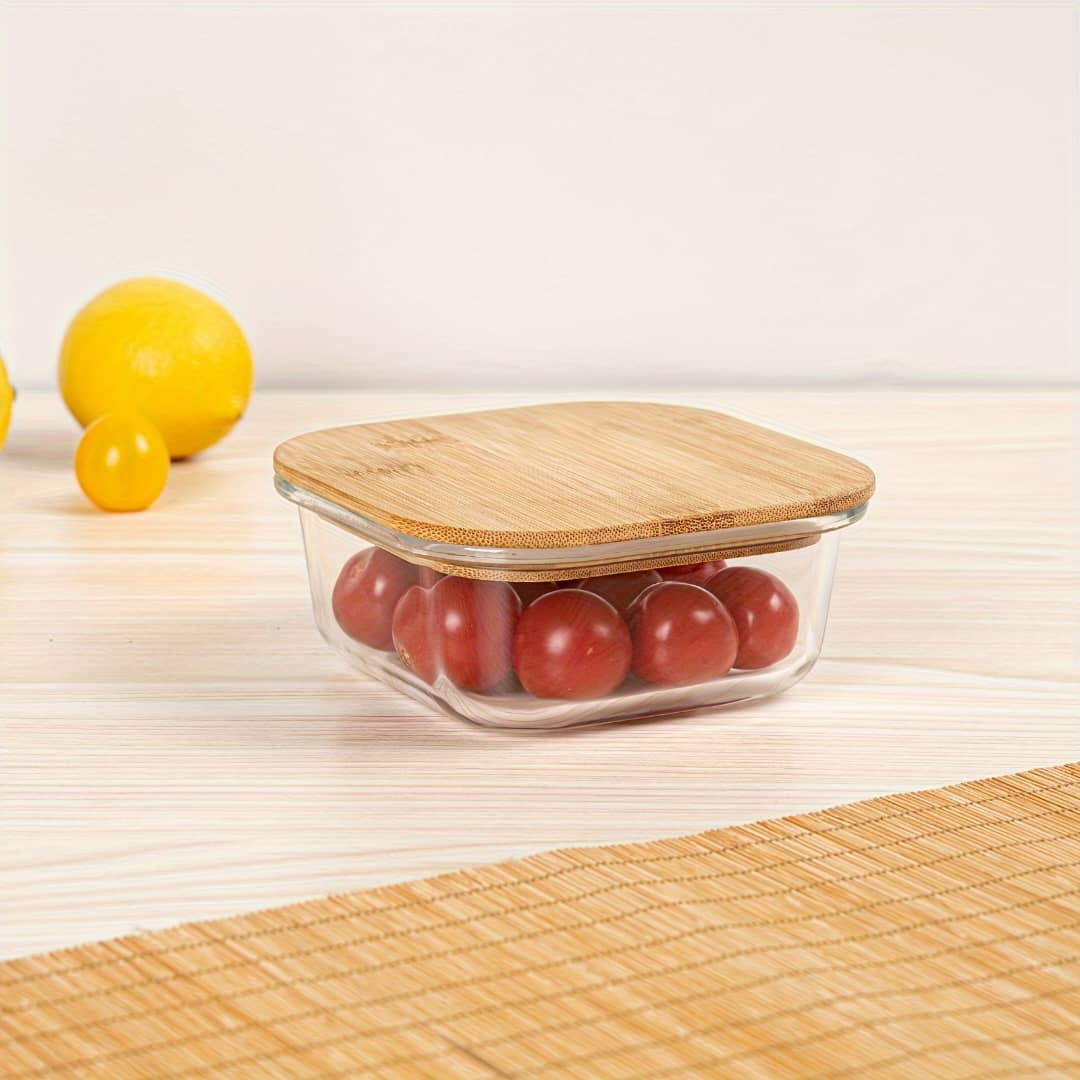 علبة حافظة طعام زجاج مربع بغطاء خشب