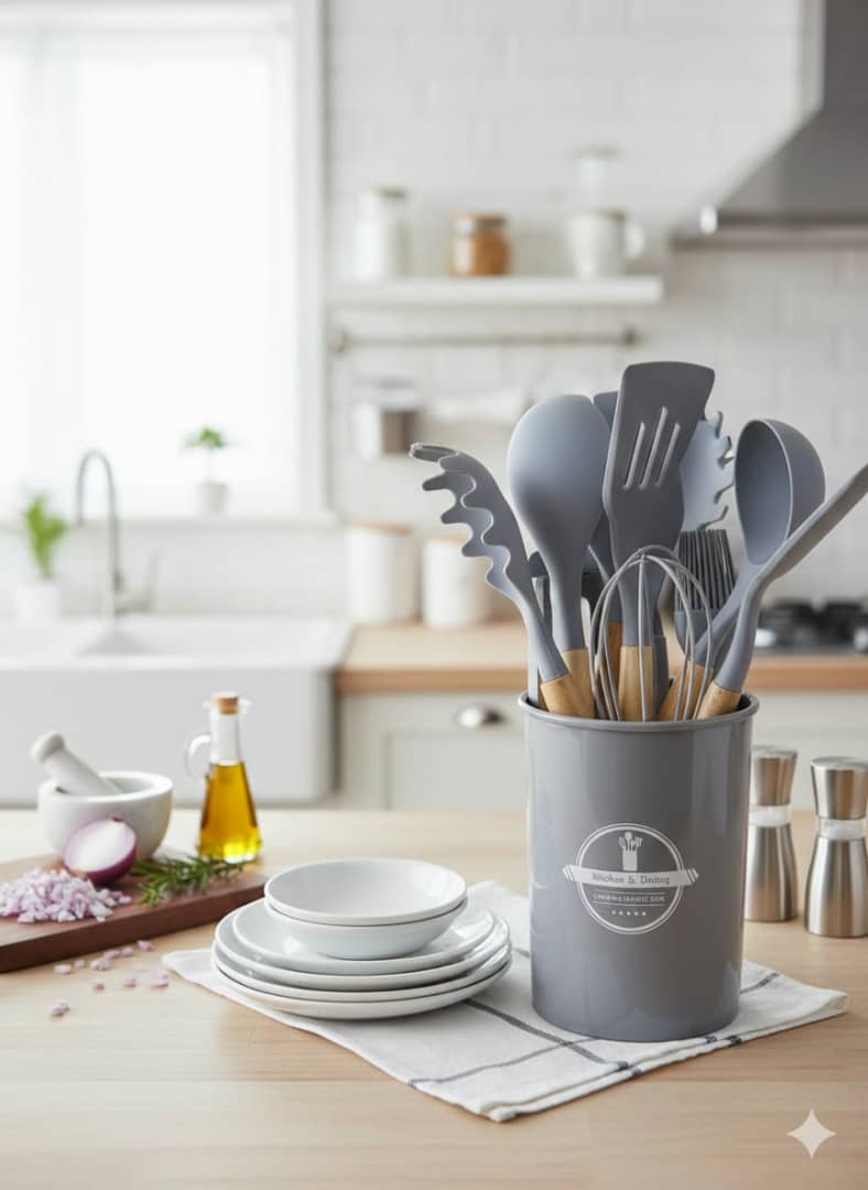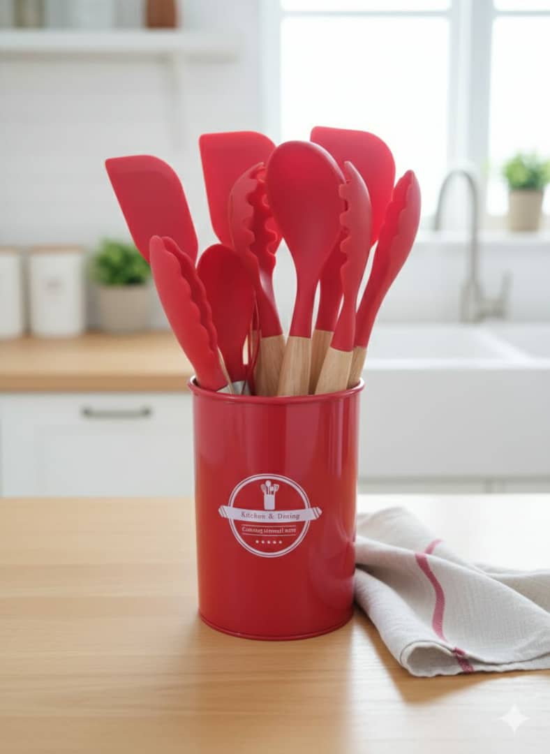طقم ملاعق طبخ سليكون مع ستاند 12 قطعة AZ-3143