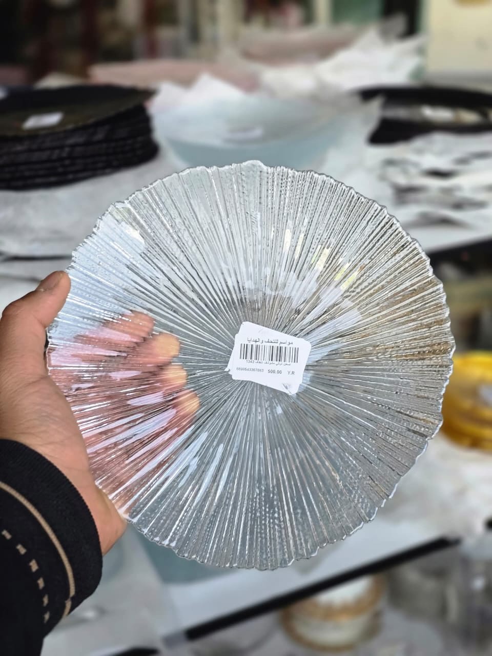 صحن تقديم زجاج مخطّط بحواف مُشرّمة – جمال التفاصيل ورونق التقديم ✨?️