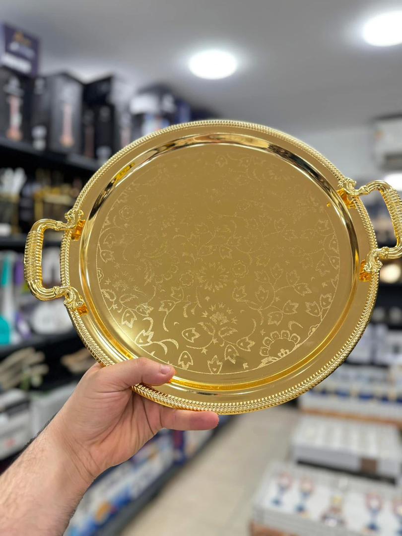 صحن تقديم ستيل ذهبي مدور راقي HK-2939