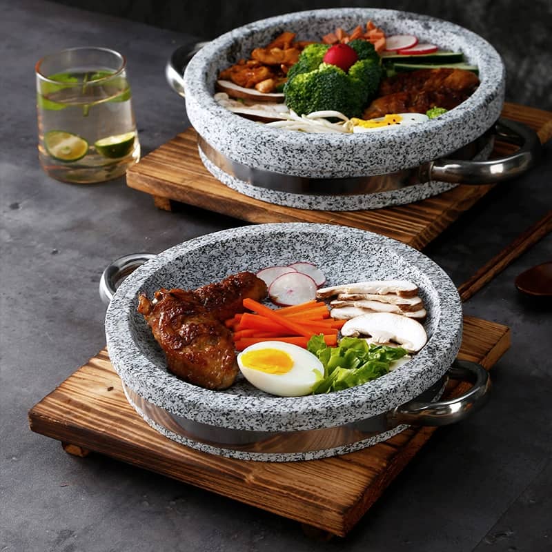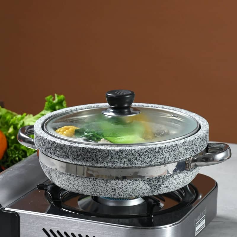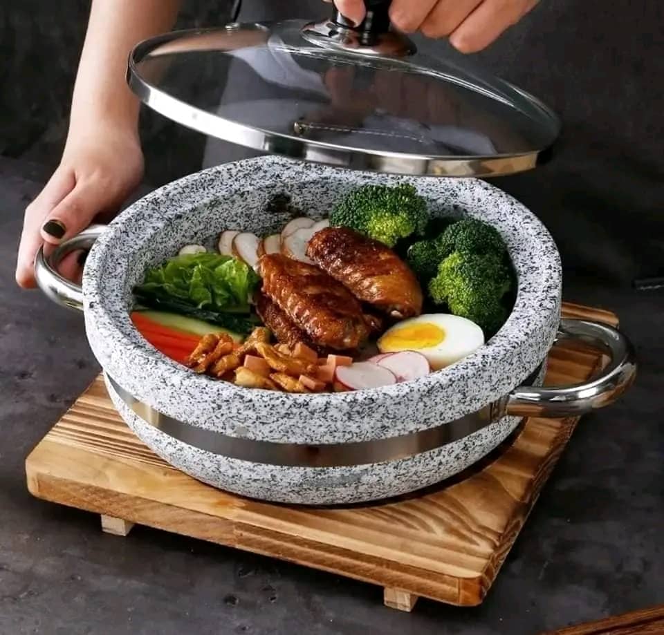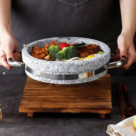 مقلى حجر بغطاء زجاج وقاعدة خشب
