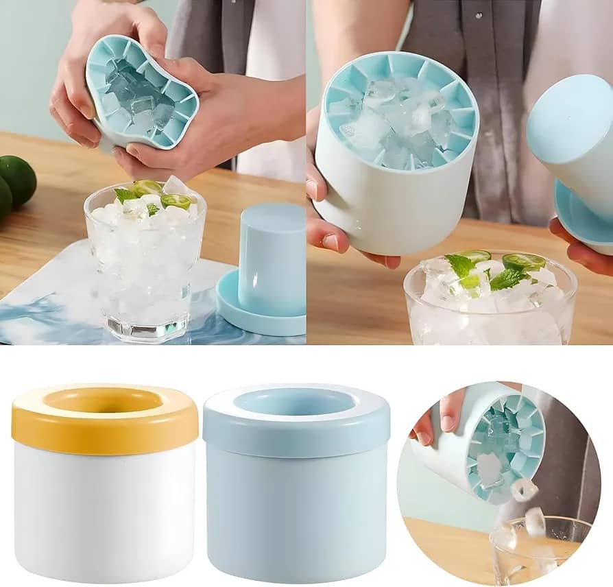 قوالب ثلج أسطوانية قابلة للضغط ومصنوعة من السيليكون مما يجعلها مرنة وسهلة الاستخدام.