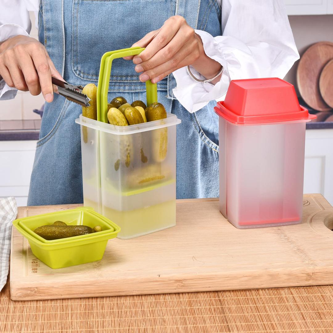 احتفظ بالمخللات أو الزيتون أو المواد المحفوظة بطريقة عملية وصحية مع حافظة المخلل البلاستيكية الشفافة سعة 2 لتر من جافي، بتصميم بسيط يسمح لك بمراقبة المحتوى ويضمن بقاءه طازجًا لفترة أطول.
