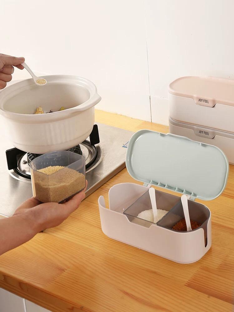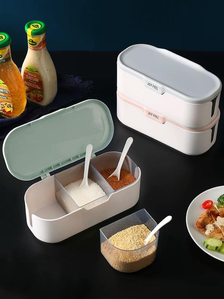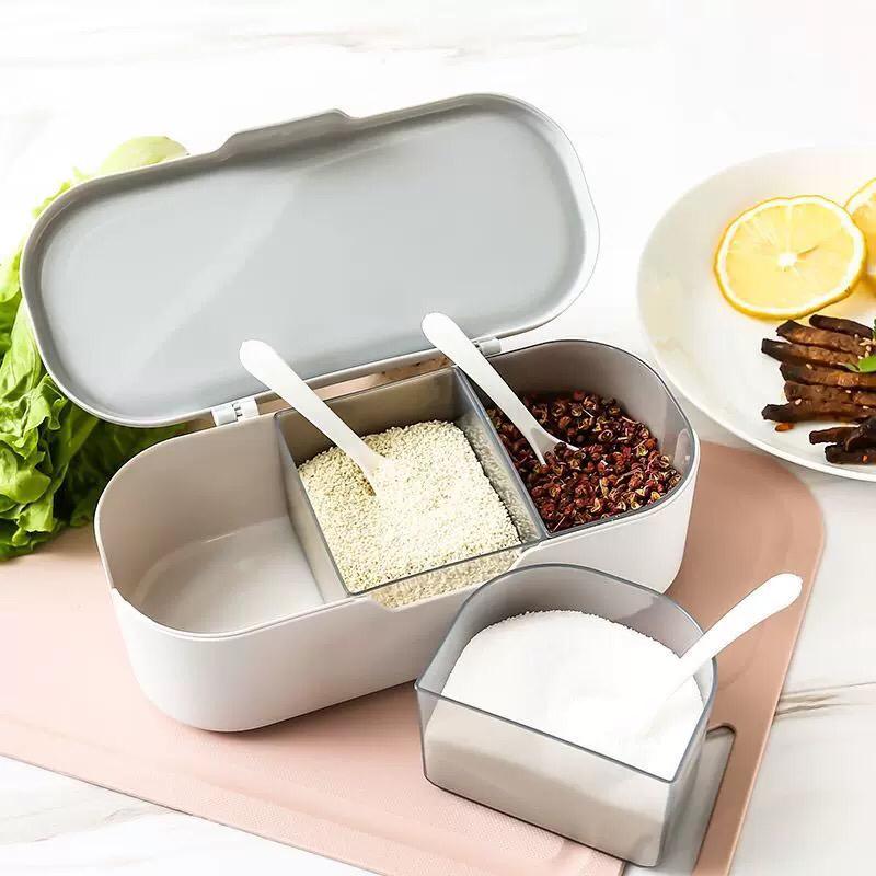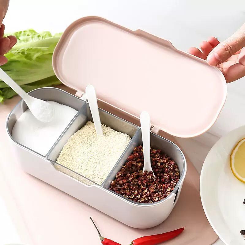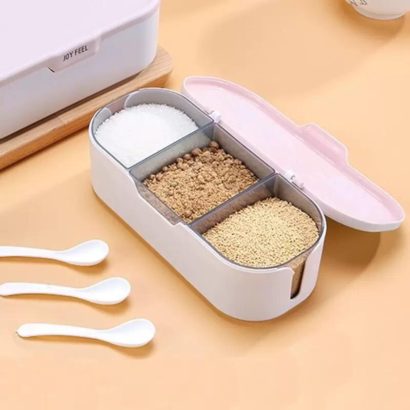 علبة بهارات بلاستيك مستطيل مقسم 3 خانات مع ملاعق AZ-1146