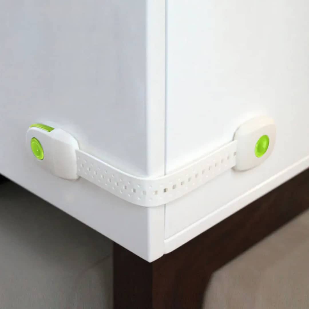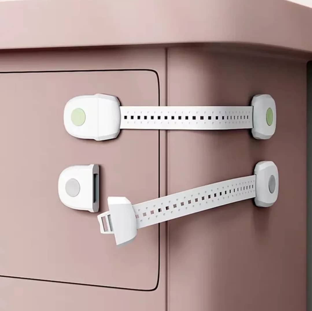 قفل متعدد الاستخدامات مزود بأزرار ضغط مزدوجة. إنه أكثر أمانًا للأطفال وسهل الفتح على الآباء. يمكن تعديل طول الحزام البلاستيكي لتلبية احتياجاتك على أكمل وجه. كما يمكن استخدامه على الأسطح المستوية والزوايا.هذه االقفل متعددة الأغراض ستحمي خزائنك وأدراجك وخزائن المطبخ وأبواب الثلاجة والفريزر وباب غسالة الأطباق وأثاث الحمام والمراحيض وصناديق القمامة والنوافذ ودرج خزانة الملفات
