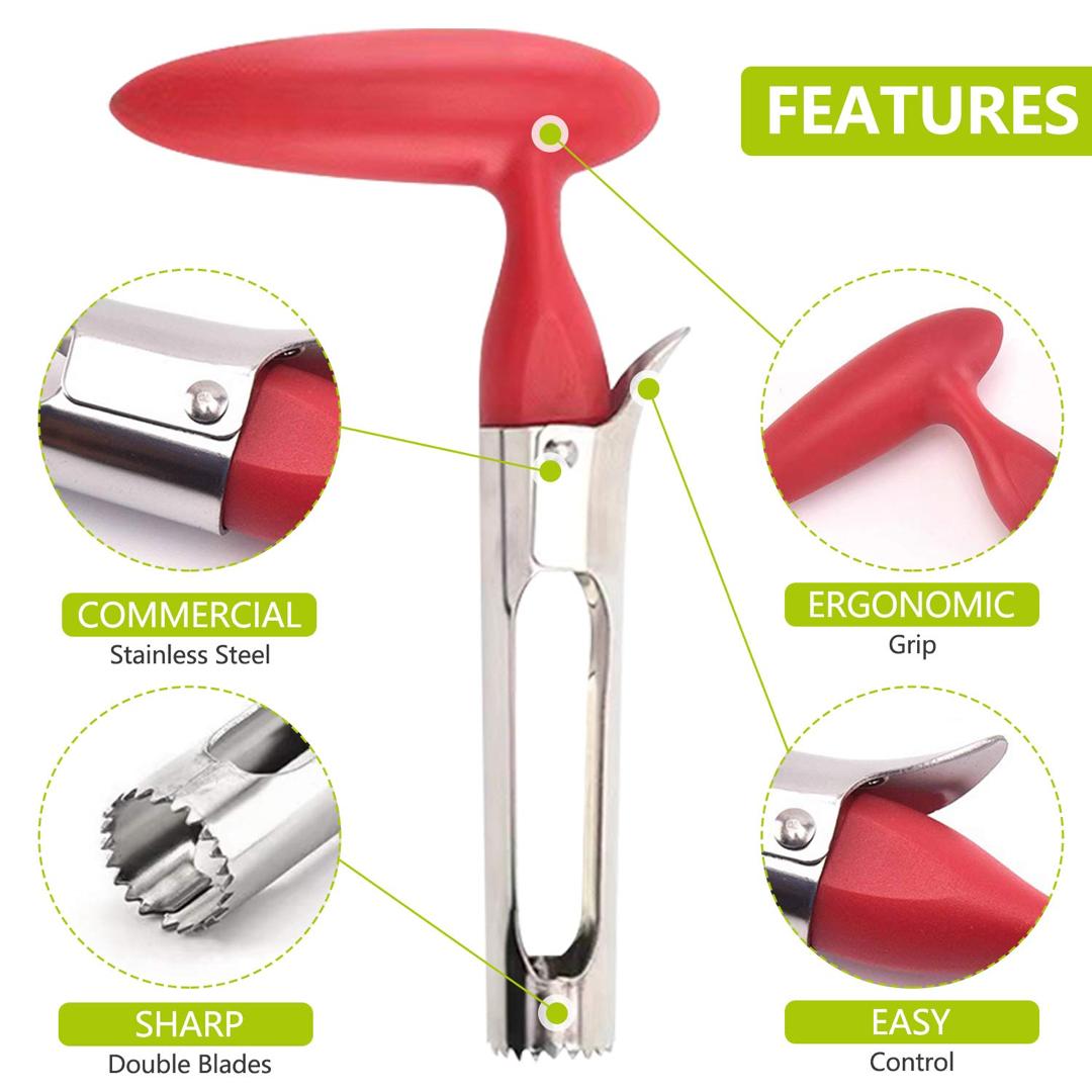حفَّار الفواكه المصنوع من الاستيل المقاوم للصدأ مع مقبض أحمر هو أداة مثالية لاستخراج اللب أو البذور من الفواكه مثل البطيخ، الشمام، والتفاح. بفضل شفرة الاستيل الحادة، يتيح لك هذا الحفار قطع الفواكه بدقة وسهولة مع الحفاظ على مظهرها الجميل.