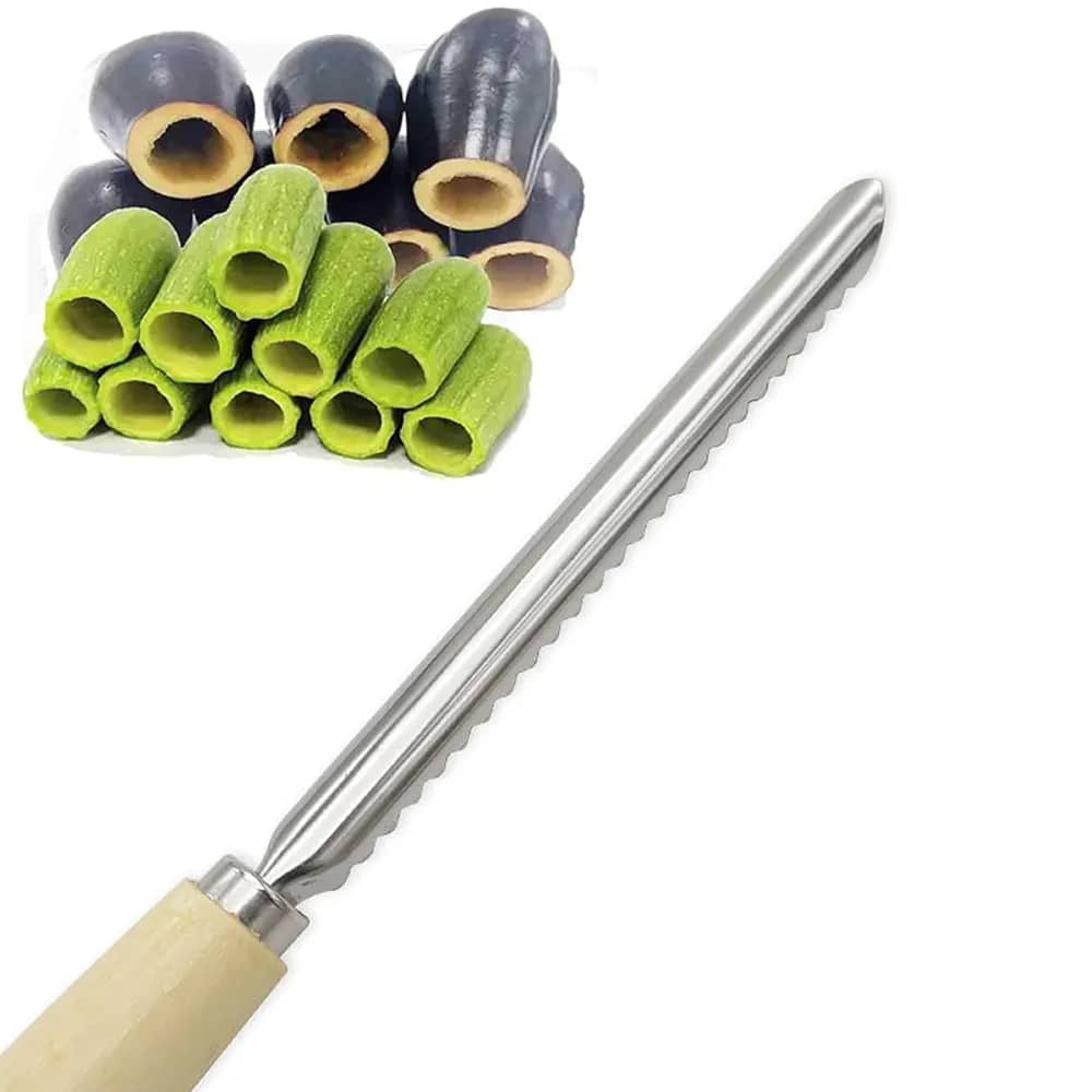 أداة مبتكرة لتحضير الكوسة والخضروات المحشية بسهولة ودقة، مصنوعة من ستيل عالي الجودة لمتانة تدوم طويلاً، مع رأس حاد لتفريغ الخضار بسرعة. مزود بيد خشبي أنيق يوفر راحة وثبات أثناء الاستخدام، ليمنحك تجربة طهي عملية ونتائج مثالية.