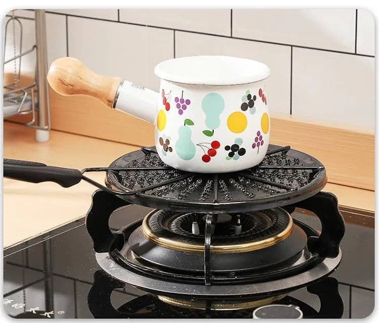 لتوزيع الحراره بشكل متساوي الي الوعاء او المقلى بدل من التركيز على ارتفاع درجة الحرارة