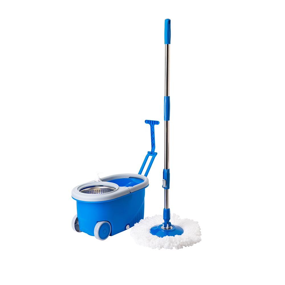 عريبة موب مزود بعجلات وعصارة معدنية قوية، وممسحة بمقبض تلسكوبي قابل للتعديل ورأس ممسحة من الألياف الدقيقة (مايكروفايبر).