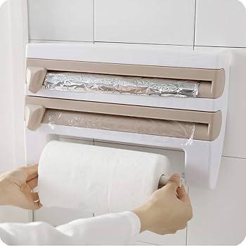 ستاند عملي متعدد الاستخدامات، مصمم لحمل المناديل الورقية، القصدير، وورق النايلون أو التغليف في مكان واحد، لتسهيل الوصول والتنظيم داخل المطبخ.