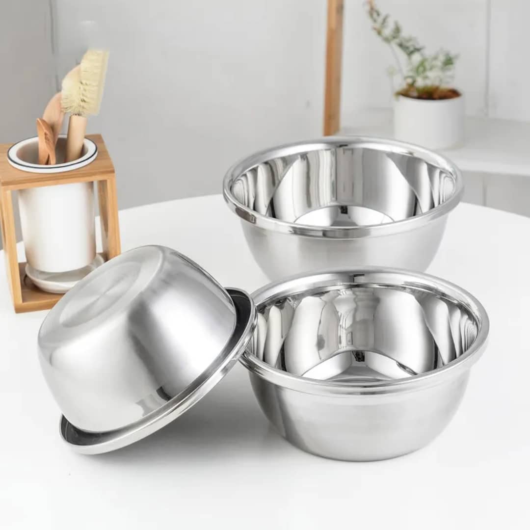 اختَر الأفضل مع المطيبة المصنوعة من الستانلس ستيل الأصلي، بتصميم عميق وعصري يناسب مختلف احتياجات الطبخ والتحضير. تأتي بعدة مقاسات لتمنحك مرونة مثالية في الاستخدام، سواء للعجن، الخلط أو التقديم.