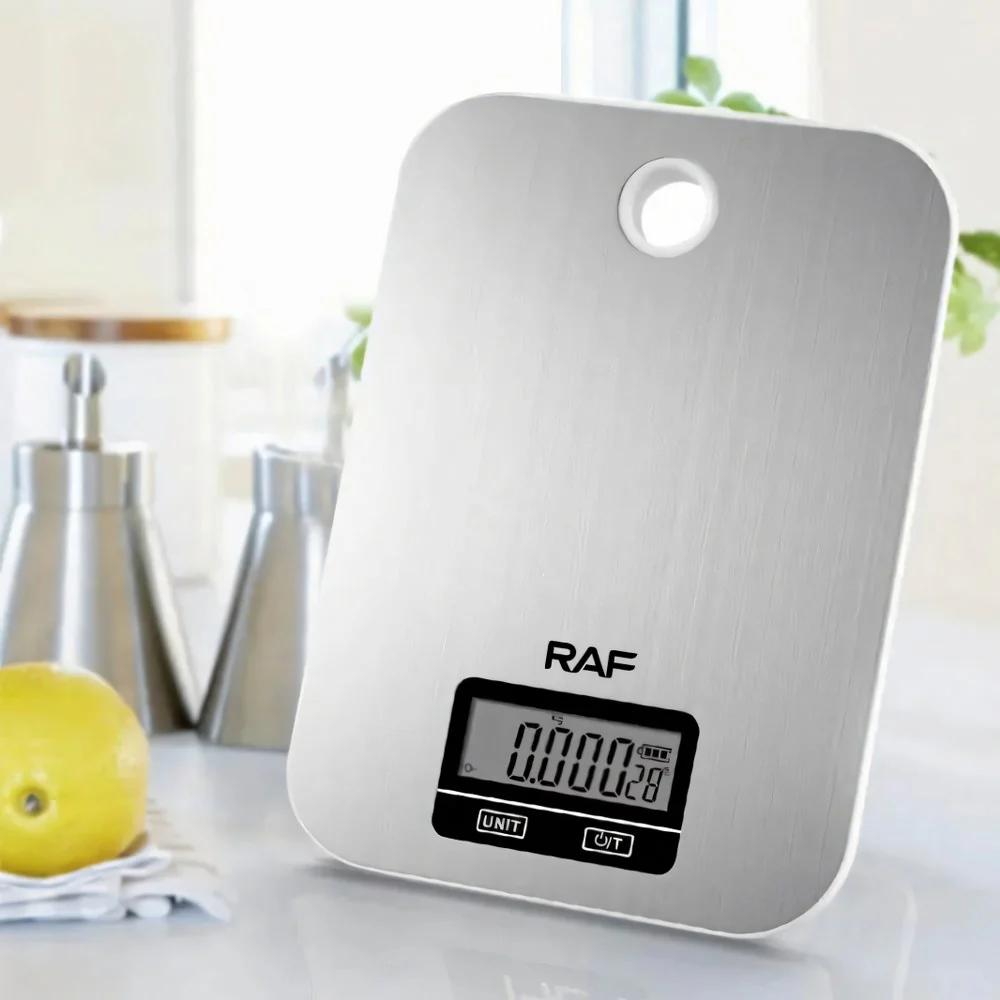ميزان رقمي دقيق من RAF، يتميز بحساسية عالية لقياس الأوزان بدقة متناهية. مزود بشاشة رقمية واضحة لعرض الوزن بسهولة، مع أزرار تحكم عملية لسهولة الاستخدام. مناسب لوزن المكونات الغذائية، المجوهرات، الأعشاب وغيرها، ويجمع بين التصميم العصري والدقة العالية ليكون أداة مثالية في المطبخ أو للاستخدام المنزلي اليومي.