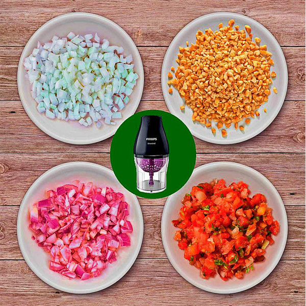 تتميز بتصميم فريد للحفاظ على المكونات في داخلها بينما تقوم الشفرات الثلاث الحادة بالتقطيع , عندما تبلغ القطع الحجم المثالي , يتم اسقاطها في الوعاء وتكون جافة ومتناسقة في كل مرة .