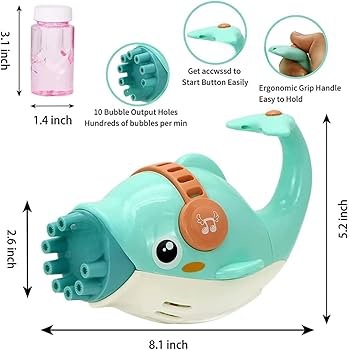 آلة فقاعات دولفين تعمل بجهد 15 فولت، توفر تجربة ممتعة ومثيرة للأطفال والكبار على حد سواء. مع تصميم رائع على شكل دولفين، يمكنها إنتاج مئات الفقاعات في الدقيقة الواحدة، مما يخلق جوًا من السحر والمرح في أي مكان.