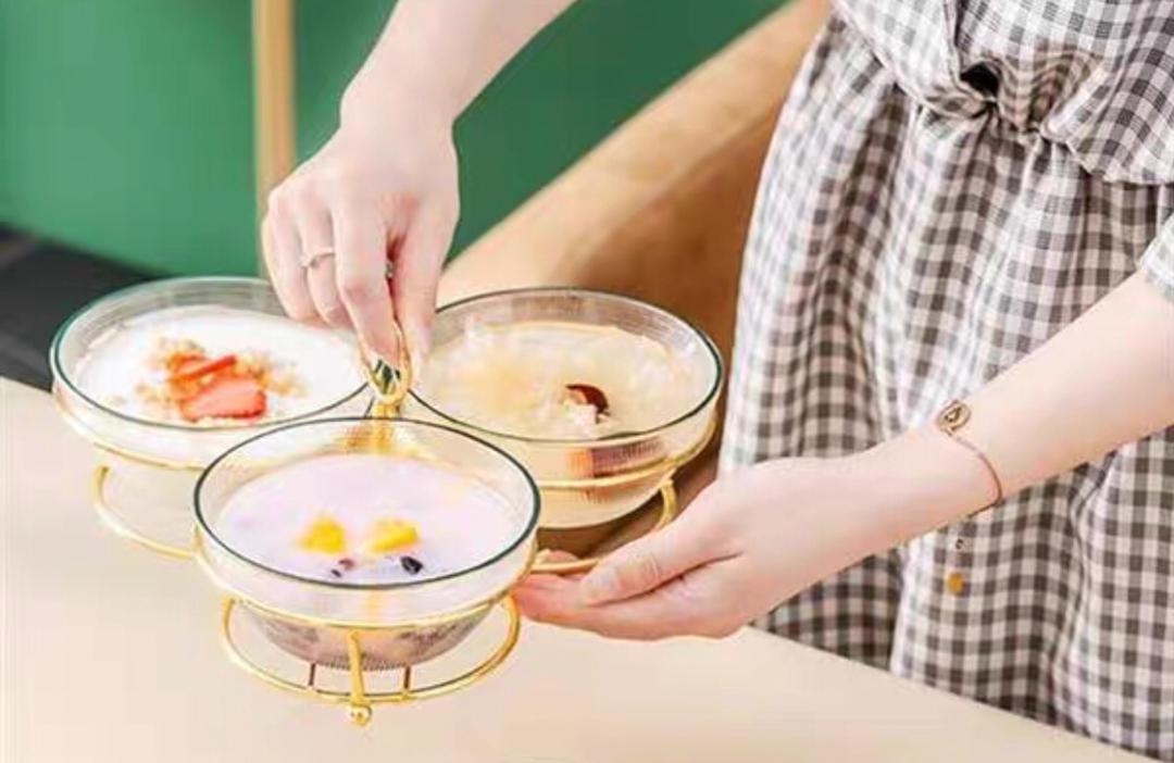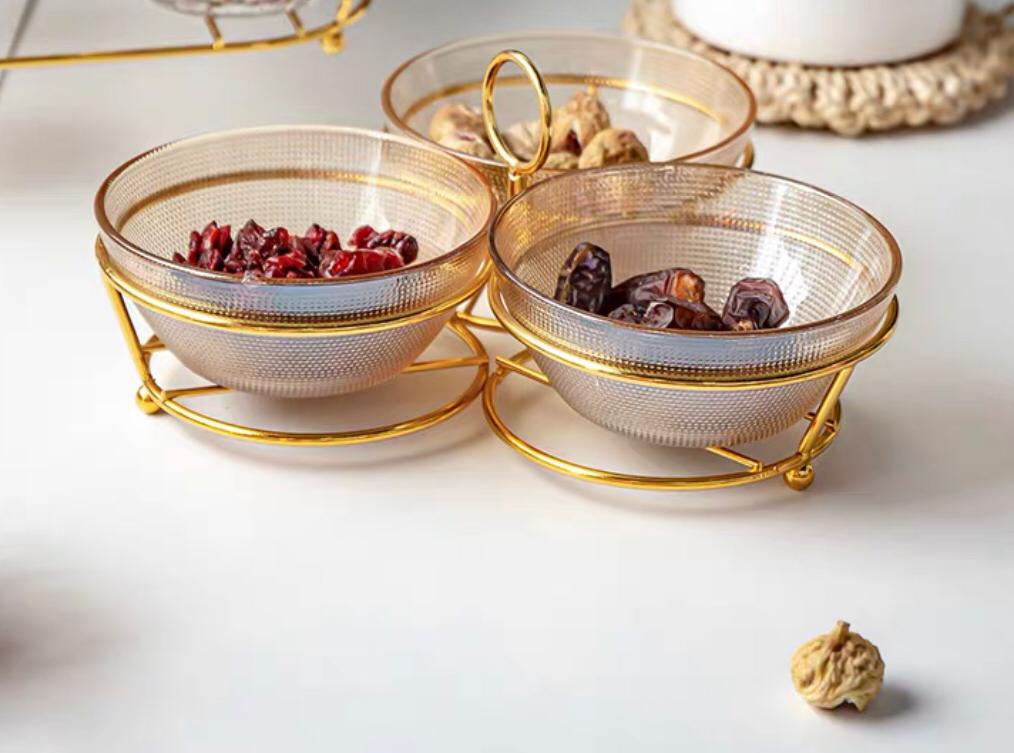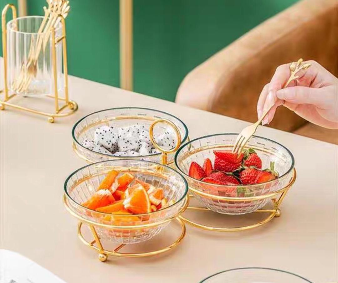 طقم شيال حلويات 3 خانات زجاج مع ستاند ذهبي AZ-1343