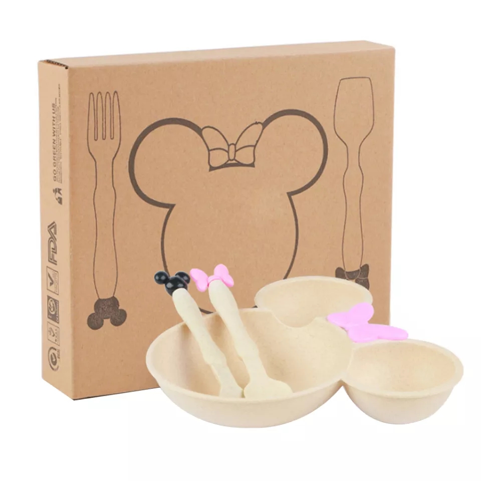 صحن اكل اطفال 3 خانات ميكي ماوس مع ملعقة AZ-902 Q/LHC01-2018