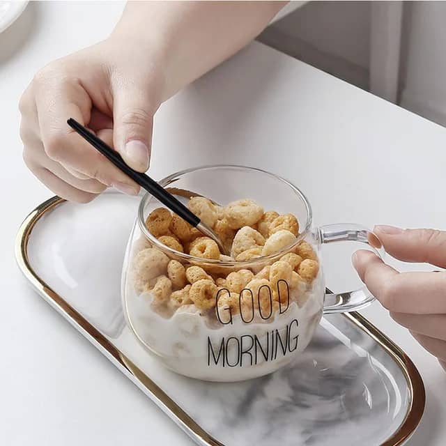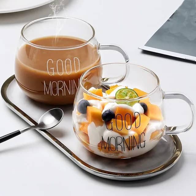 كوب زجاج بيد 400 مل AZ-2202 GOOD MORINING