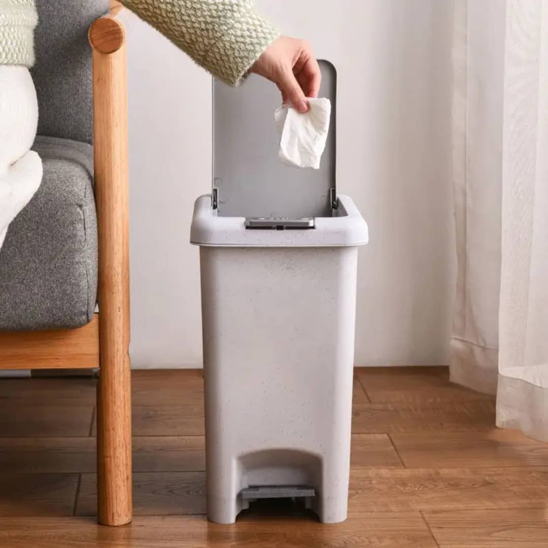 سلة مهملات منزلية بغطاء يعمل بدواسة للقدم.
