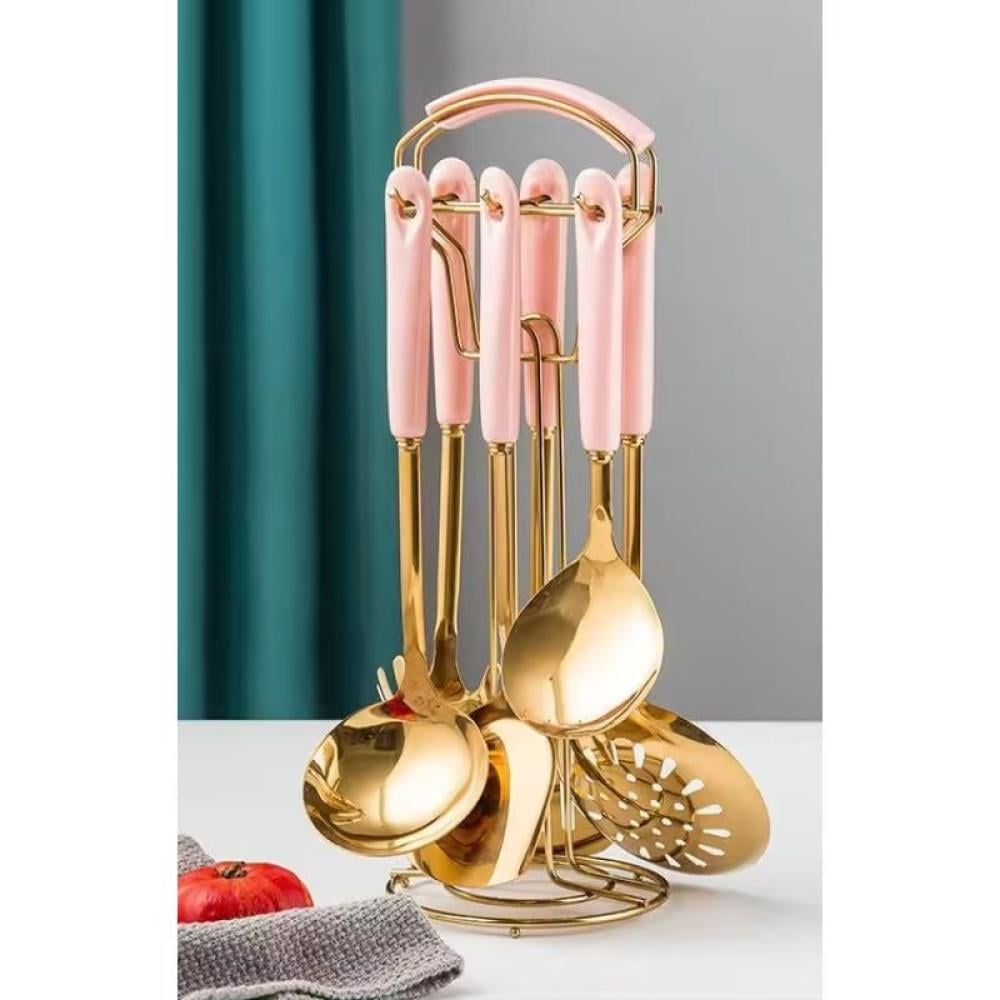 طقم ملاعق طبخ 6 قطع مع ستاند ذهبي ZA-9400