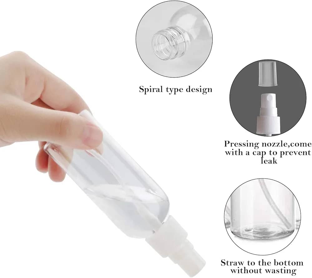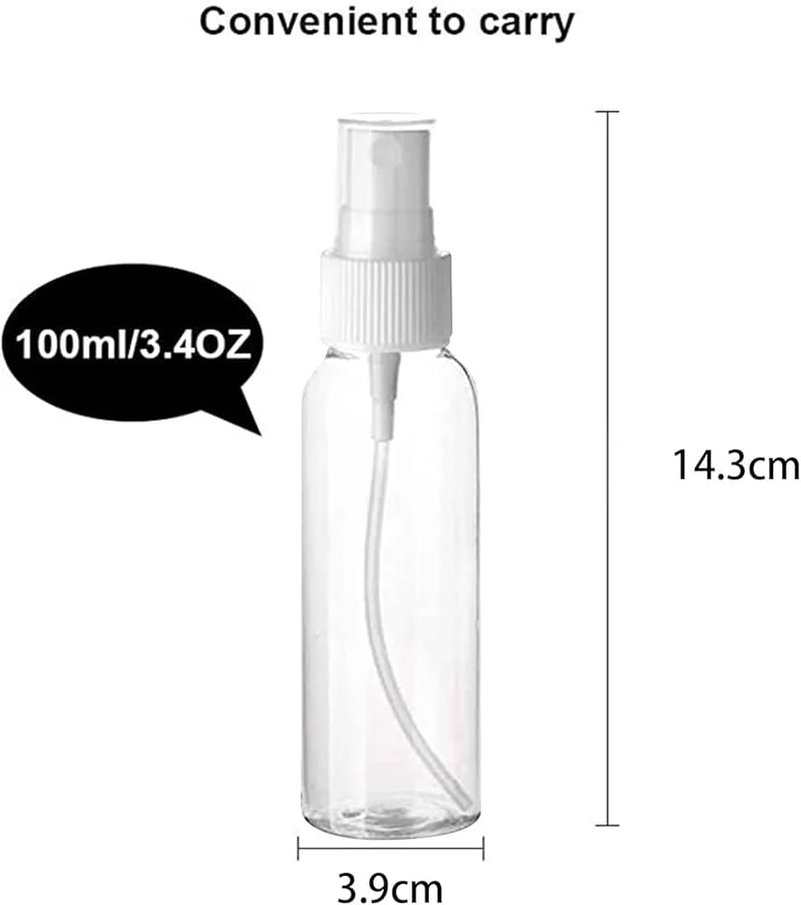 علبة بخاخ عملية بسعة 100 مل، مصنوعة من بلاستيك شفاف عالي الجودة لسهولة معرفة المحتوى. مزودة برشاش بخاخ ناعم لتوزيع متساوٍ للسوائل، مثالية للعطور، المعقمات، مستحضرات التجميل أو الاستخدامات المنزلية المتعددة. تصميم خفيف وسهل الحمل للسفر أو الاستعمال اليومي.