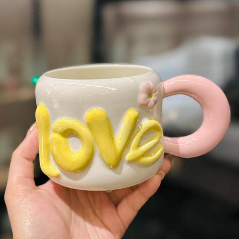 كوب سيراميك أبيض LOVE ثقيل – بساطة أنيقة مع لمسة حب ?☕