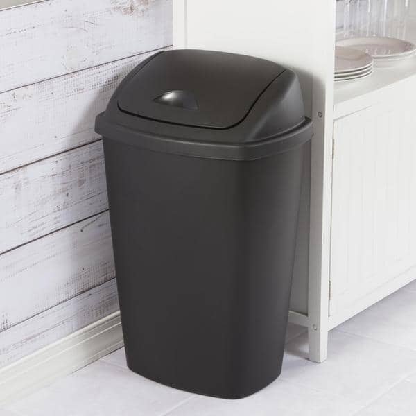 يتميز الغطاء بخاصية التأرجح التي تسمح بفتحه بسهولة بلمسة خفيفة للتخلص السريع من النفايات، أو يمكن رفعه وتثبيته في وضع الفتح لإضافة العناصر الكبيرة.